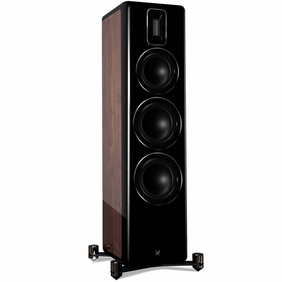 Сложно сказать, чем именно новинки поддерживают «эволюцию промышленного дизайна» компонентов Vena и Artera (так заявляют в Quad), но выглядят эти напольники просто на порядок роскошнее прочих изделий Quad. Черный рояльный лак уже давно в тренде, дерево с мягкой ровной текстурой (вроде того же ореха) под полированным лаком снова полюбился интерьерным дизайнерам, а вместе такая отделка образует весьма необычное и модное сочетание. Quad Revela 2 привлекает к себе и качеством исполнения. Идеальны и плоские поверхности, и все скругления. Лак уложен абсолютно бесшовно и всюду отполирован до зеркальной чистоты. Так искусно не всегда делают даже дорогую мебель.
