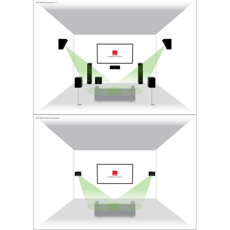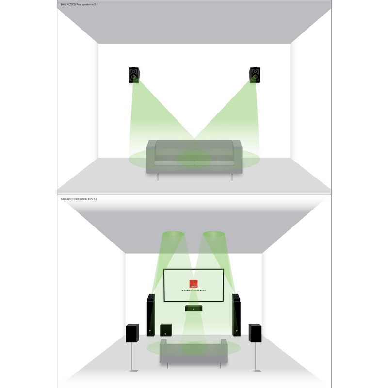 Датское акустическое ателье DALI не стало исключением, предложив очень интересную модель акустических систем Alteco C-1. Изначально эти колонки проектировались для оснащения домашних кинотеатров с поддержкой новых форматов окружающего звучания Dolby Atmos, DTS:X и Auro 3D. Максимальная конфигурация системы окружающего звучания домашнего кинотеатра Dolby Atmos и DTS:X на сегодня - 7.2.4. То есть, стандартная схема окружающего звучания 7.2 дополнена четырьмя потолочными колонками. Но чаще находит применение младшая конфигурация с парой потолочных сателлитов, которые могут монтироваться на потолке, вешаться на стену над фронтальной парой акустики, либо просто устанавливаться поверх фронтальных колонок. В последнем случае верхние колонки работают на отражение от потолка. Для монтажа в потолок лучше выбрать встраиваемую модель акустики, а для двух других случаев идеально подойдут DALI Alteco C-1. В случае выбора конфигурации 7.2.4 еще одна пара таких колонок располагается в тылу - аналогично либо сверху на задней стене кинозала, либо поверх тыловой акустики.