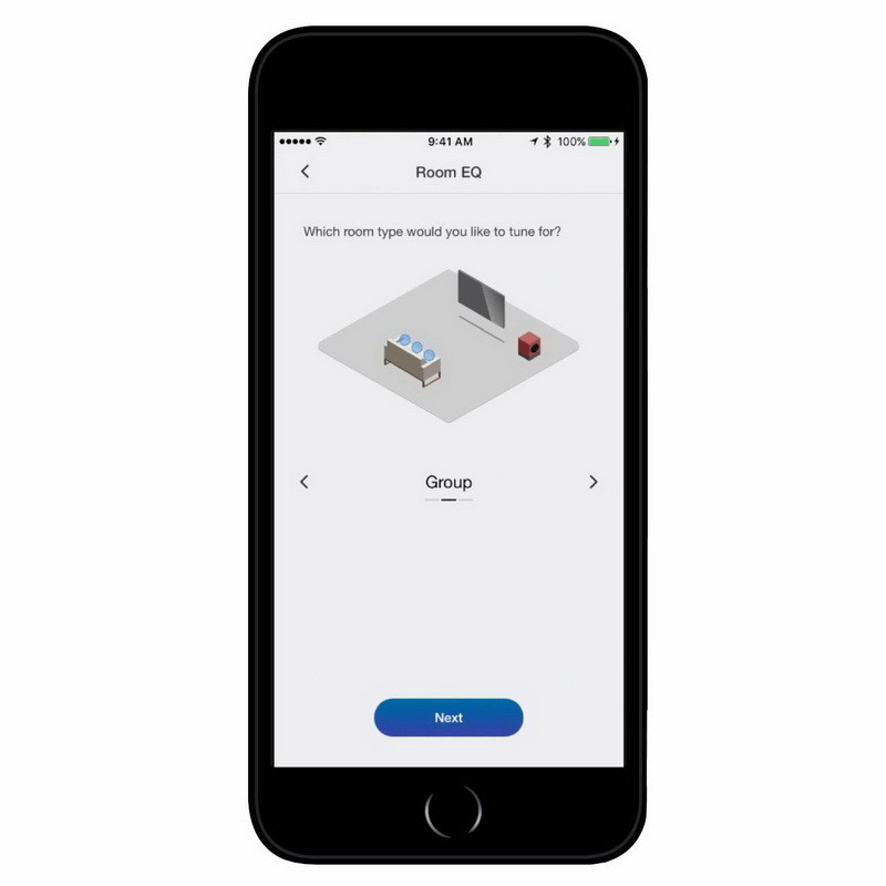 Приложение предлагает вам выбрать вход (RCA или XLR), и тип соединения (Stereo или LFE). Можно также регулировать усиление входного сигнала, его эквализацию (плоская, музыка, фильм или пользовательская), управлять настройками стерео и режимом автоматического включения. Здесь даже предусмотрена автоматическая коррекция параметров звучания в зависимости от помещения, при использовании которой задействуется микрофон, встроенный в смартфон. В этом случае сабвуфер вырабатывает тестовый сигнал, а смартфон необходимо последовательно разместить в семи точках помещения.