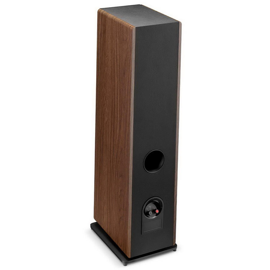 Относительно басовиков у нас тоже есть подтверждения тому, что для Vestia спроектированы собственные головки с усиленными магнитными системами. А из этого вытекает, что заново разработаны и разделительные фильтры, хотя по паспорту нижняя и верхняя частоты деления у Vestia №2 отличаются от Chora 826 всего на 10 и 100 Гц соответственно. Одинаковы у этих моделей только колодки подключения — c удобной скошенной нишей и изолированными винтовыми зажимами под любой стандартный одинарный кабель с наконечниками-«вилками» или «бананами». Порты тоже вполне привычные, с немалыми и слегка скругленными раструбами. Зато куда солиднее выглядят опорные платформы — они литые, с регулируемыми шипами и контршайбами.