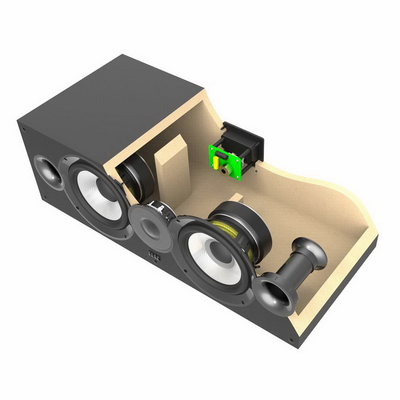 Динамики подключены к разделительному фильтру, выполненному из отборных компонентов. Его настройка позволяет получить очень точное и натуральное звучание в среднечастотном диапазоне, что является критически важным для колонки центрального канала. Для подключения к усилителю служит пара позолоченных винтовых клемм.