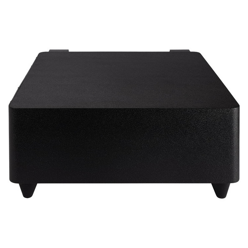 Сабвуфер ELAC Muro Sub2010 относится к серии моделей Slim этой компании, выполненных в плоских корпусах. Благодаря этому сабвуфер очень удобен в размещении в жилом интерьере так как занимает небольшую полезную площадь. При этом сабвуфер SUB 2010 можно размещать как вертикально, так и горизонтально, или даже подвесить на стену с помощью входящих в комплект кронштейнов. В то же время, благодаря правильно подобранным пропорциям корпуса и его точного согласования с НЧ-динамиком ELAC Muro Sub2010 не уступает по уровню и глубине басов моделям с более традиционным дизайном. Аппарат выполнен в корпусе из MDF значительной толщины, дополнительно усиленном внутренними стяжками, и покрытым качественной виниловой пленкой.