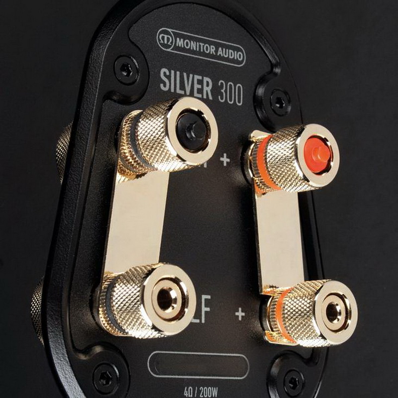 Модель Monitor Audio Silver 300 имеет две пары винтовых терминалов для двухпроводного подключения. Кроссовер включает в себя отборные элементы, среди которых имеются полипропиленовые конденсаторы. В качестве кабеля для внутренней разводки выбран фирменный Pureflow с проводниками из бескислородной меди с серебряным покрытием.