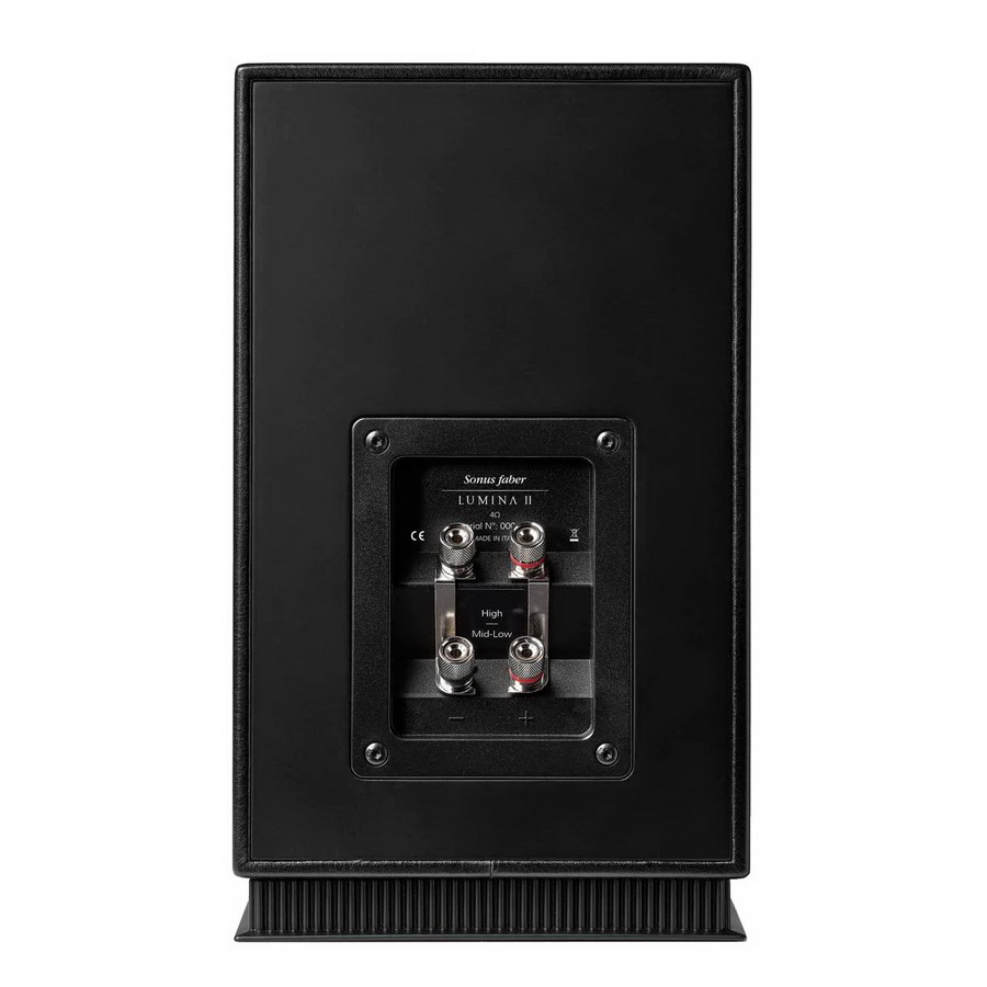 Многослойное дерево и натуральный шпон передней панели колонки Lumina доступны в отделки знаковых колонках премиум класса, и включают орех и венге, оба в матовом исполнении со вставками из клена, а также третий вариант с отделкой в черном рояльном лаке. Все остальные поверхности колонки вручную обтянуты нашей легендарной черной кожей. Хромированные кольца вокруг динамиков подчеркивают формы и пропорции и придают яркость передней панеле, подчеркивая характер звучания Sonus Faber. Колонки Lumina также снабжены двумя парами никелированных клемм, что позволяет усовершенствовать систему с помощью двухпроводного подключения или двухканального усиления. Кроссоверы в Lumina используют специально разработанные высококачественные конденсаторы изготовленные под маркой Sonus Faber.