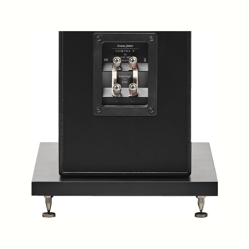 Многослойное дерево и натуральный шпон передней панели колонки Lumina доступны в отделки знаковых колонках премиум класса, и включают орех и венге, оба в матовом исполнении со вставками из клена, а также третий вариант с отделкой в черном рояльном лаке. Все остальные поверхности колонки вручную обтянуты нашей легендарной черной кожей. Хромированные кольца вокруг динамиков подчеркивают формы и пропорции и придают яркость передней панеле, подчеркивая характер звучания Sonus Faber. Колонки Lumina также снабжены двумя парами никелированных клемм, что позволяет усовершенствовать систему с помощью двухпроводного подключения или двухканального усиления. Кроссоверы в Lumina используют специально разработанные высококачественные конденсаторы изготовленные под маркой Sonus Faber.