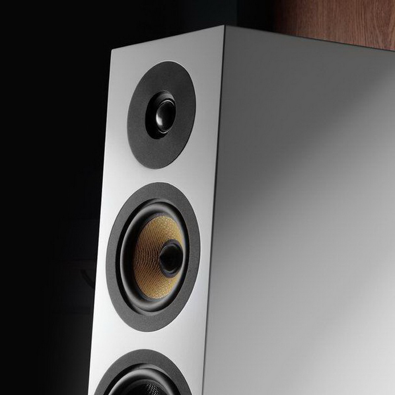 Все динамики, разумеется, спроектированы специалистами Davis Acoustics. Басовая полоса озвучивается 6,5-дюймовым (17 см) драйвером с диффузором из карбонового волокна. Этот материал имеет высокую жёсткость при малой массе, а тканая структура обладает хорошими демпфирующими свойствами. Это означает, что динамик способен звучать с минимальными искажениями, не окрашивая звучания. Он работает в фазоинверторном оформлении и отличается линейной характеристикой в диапазоне 40 – 400 Гц. Порт внушительного диаметра выведен вперёд, поэтому колонки можно поставить ближе к стене. Меняя расстояние до неё, удастся подкорректировать характер баса.