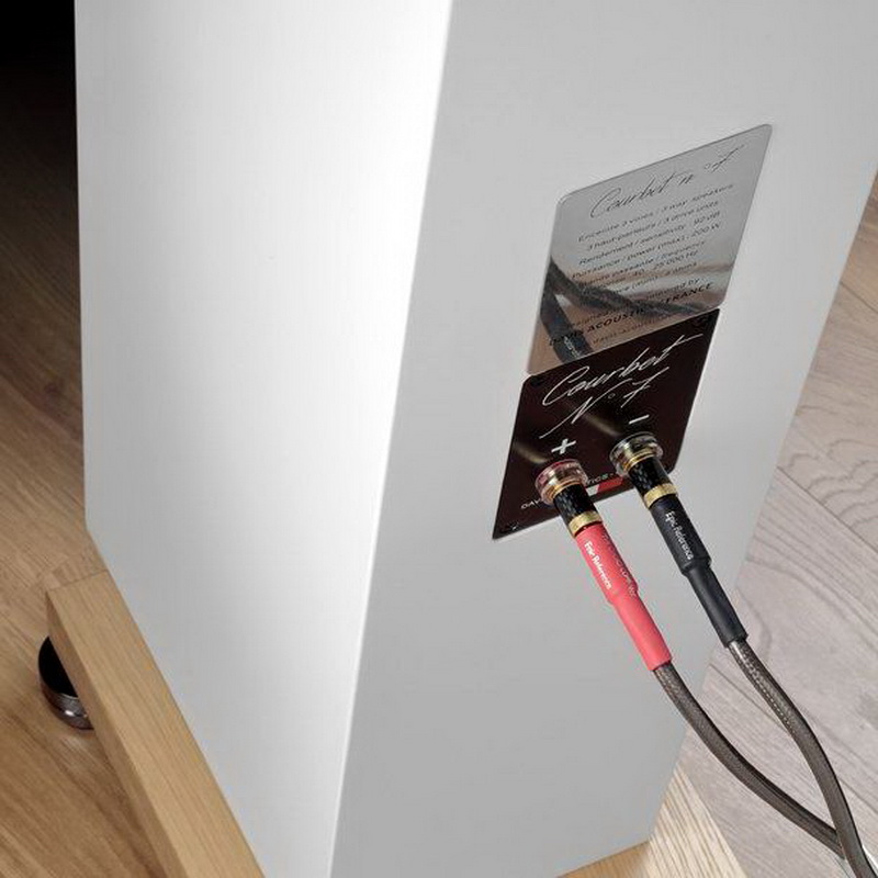Разделительный фильтры собраны навесным монтажом с максимально коротким путём прохождения сигнала. Возможно, поэтому раздельное подключение полос создатели Courbet №7 посчитали нецелесообразным — на задней стенке две входные клеммы.