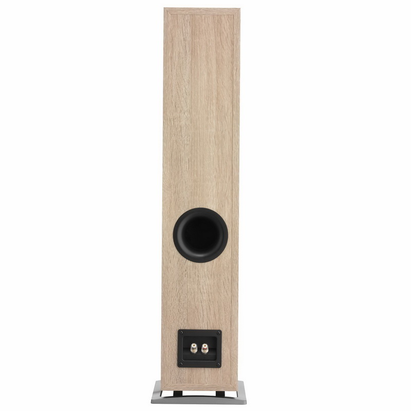 Поднеся руку к широкому выходу порта фазоинвертора, расположенного на задней стенке, я ощутил, как много воздуха колеблется при его работе. Каких-либо призвуков при этом не возникло, думаю, благодаря аэродинамическим очертаниям его раструба. Глубина баса примерно соответствует тому, что можно ожидать от АС такого размера. Он хорошо очерчен, достаточно разборчив тонально, а главное — не вызывает желания что-то менять: передвигать колонки, вставлять заглушки и т. д. Ни на одной из предложенных записей он не доминировал, но и нехватки каких-либо нот не ощущалось.