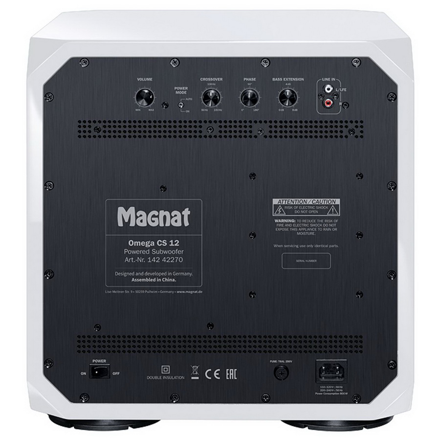 Что касается соединений, новый Magnat Omega CS 12 имеет только одну пару гнезд типа «тюльпан» в качестве входа низкого уровня. Само собой разумеется, что новый Magnat Omega CS 12 имеет автоматический резервный контур с низким энергопотреблением, который при желании можно отключить.