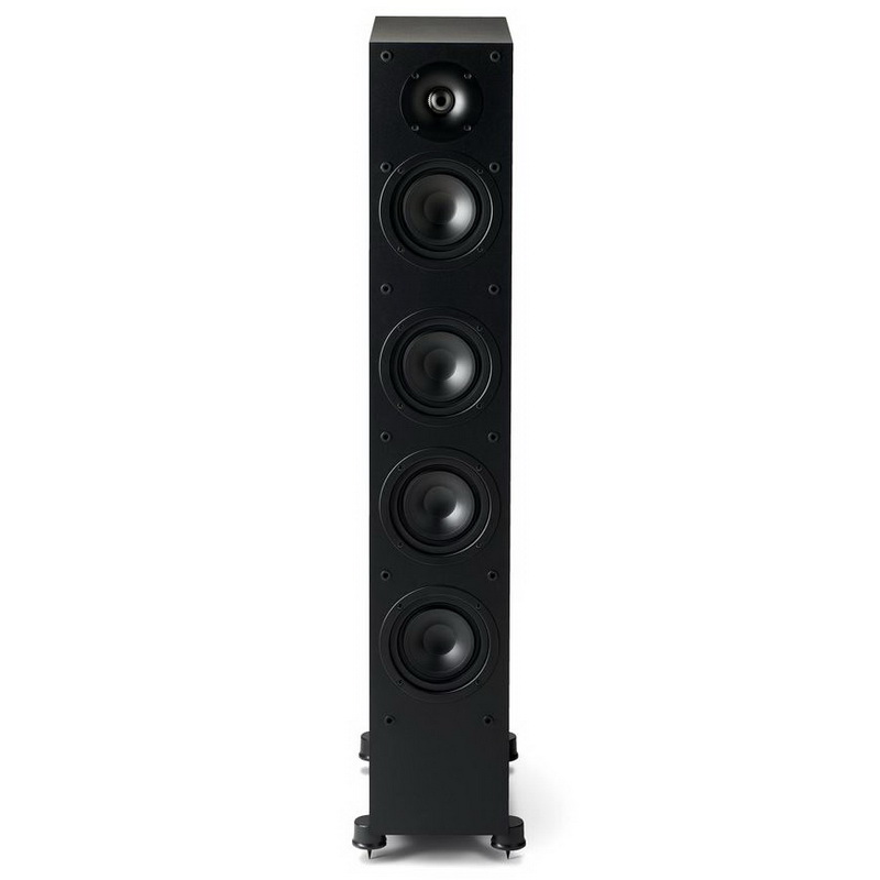 Корпуса Paradigm Monitor SE 6000F отделаны виниловой пленкой, в данной ценовой категории фирма решила не тратиться на шпон или лак, а все усилия приложить к «начинке» АС. На высокочастотных динамиках сразу же заметны фирменные акустические линзы PPA (Perforated Phase-Aligning) – ровно такие же используются и в топовых АС Paradigm Persona (технология запатентована). Вообще, с драйверами тут все интересно – колонки трехполосные; в качестве твитеров используются фирменные дюймовые куполы X-PAL (чистый алюминий), а на СЧ и НЧ работают 5,5-дюймовые вуферы с диафрагмами из усиленного минеральными нитями полипропилена (их пылезащитные колпачки инвертированы). На басу динамиков целых три штуки, но к нижней граничной частоте компания подходит очень строго и заявляет ее на уровне 53 Гц с погрешностью в 3 дБ. Впрочем, в пределах 30 градусов от оси и в реальном зале, АС выдают уже бас от 40 Гц. Акустическое оформление – фазоинвертор. Paradigm Monitor SE 6000F имеют сопротивление в 8 Ом, чувствительность в 90 дБ (93 дБ в комнате). Подводимая мощность – от 15 до 130 Вт, при этом, пиковая мощность АС ограничена 100 Вт. Весит одна колонка Paradigm Monitor SE 6000F почти 20 кг, размеры корпуса 105 × 23 × 36 см: с инсталляцией таких «стройняшек» проблем не будет.