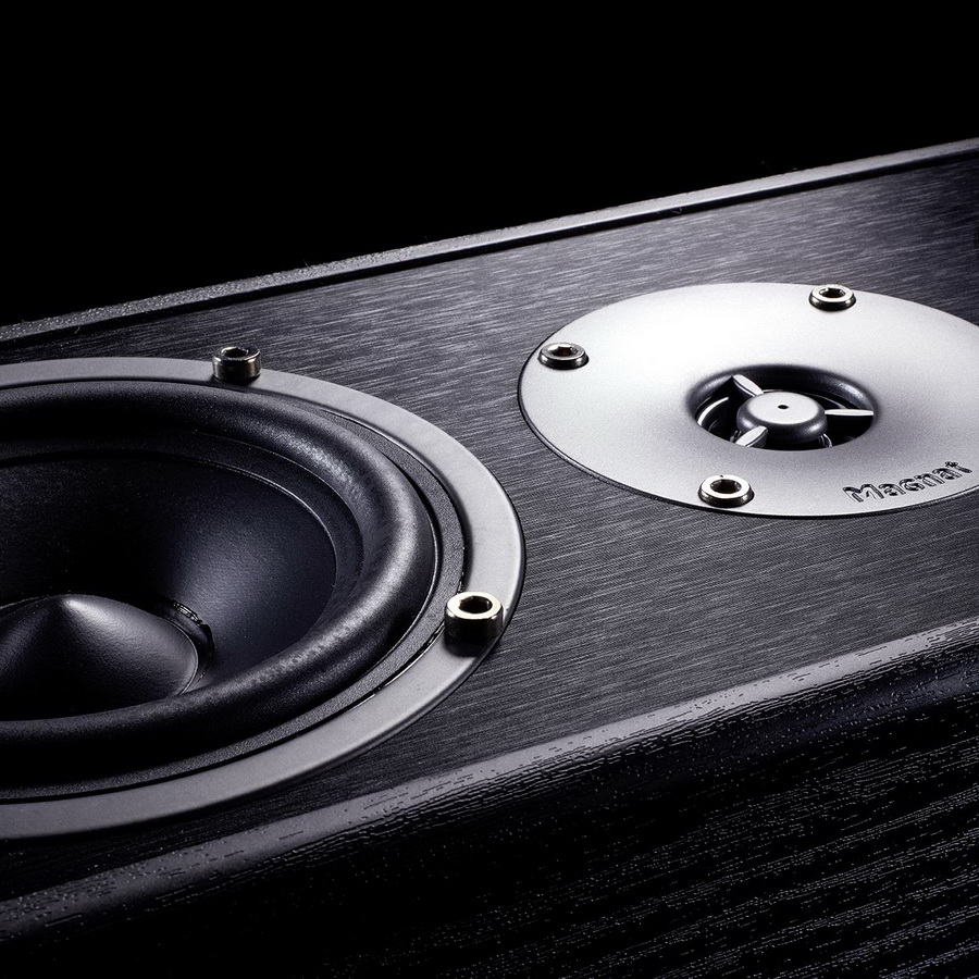 Твитер в Magnat Monitor S12 C оснащен 13-мм куполом из майлара и нагружен на звуковод – рупор небольшой глубины с фазовой заглушкой в центре динамика. Таким образом диаграмма направленности колонки на ВЧ выравнивается, а чувствительность повышается. Акустическая система формирует широкую фронтальную звуковую картину, которая точно привязана к происходящему на экране. Для подключения к усилителю служит пара позолоченных винтовых клемм. Съемная тканевая защитная сетка крепится с помощью надежных штифтов. Для демпфирования вибраций, а также придания Magnat Monitor S12 C хорошей устойчивости, колонка комплектуется резиновыми опорами.