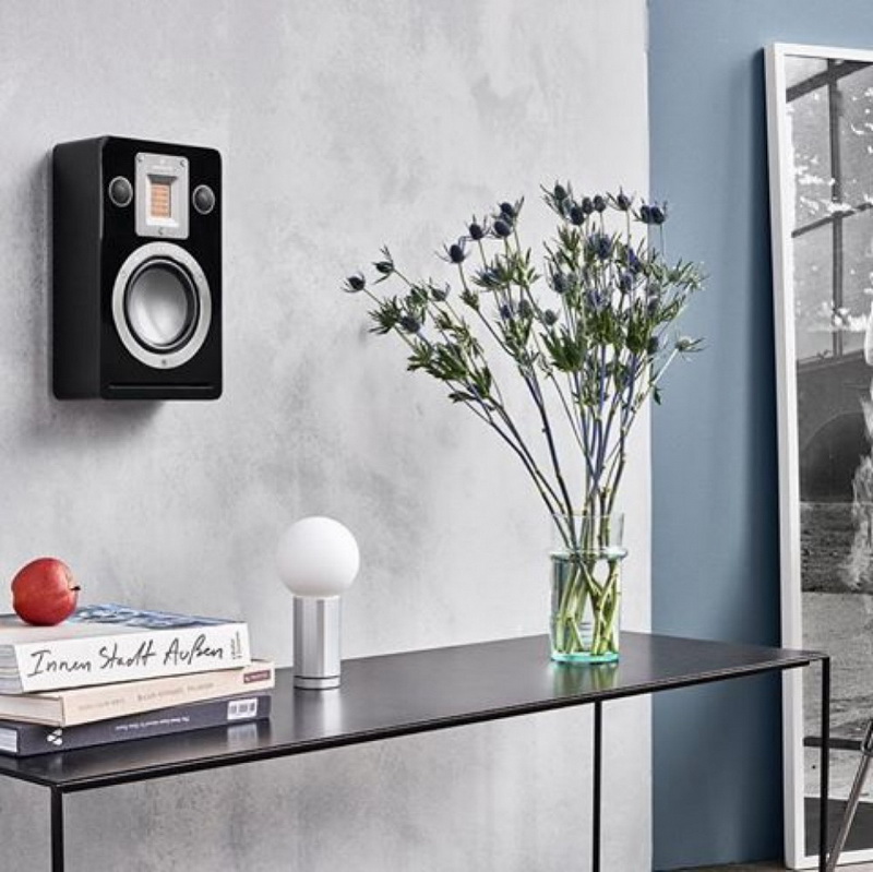 Системы выпускаются в чёрном лаке (на фото), в шпоне тёмного ореха, есть также и белый матовый вариант. Грили крепятся на магнитах. Качество изготовления и отделки – великолепное.