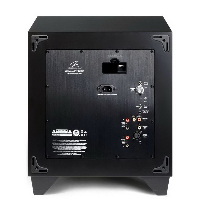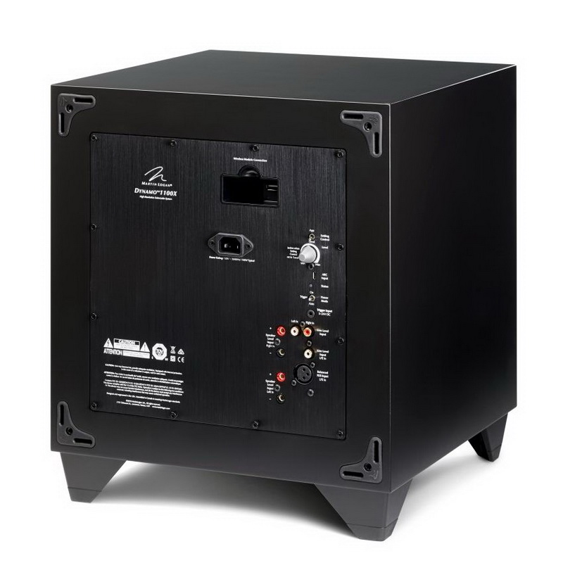 Для устранения проблем с проводкой сигнального кабеля система предусматривает установку опционального беспроводного входа SWT-X (продается отдельно). Он использует новейшие технологии беспроводной передачи звука, включая динамический выбор частоты 2,4 ГГц, прямое исправление ошибок и работу на расстоянии до 15 метров. Модель MartinLogan Dynamo 1100X также имеет вход левого и правого канала RCA, вход для сигнала высокого уровня. Кроме того, MartinLogan Dynamo 1100X получил входы XLR и RCA для подключения LFE. Левый и правый входы содержат дискретные, настраиваемые пользователем фильтры нижних частот, позволяющие использовать разные уровни и точки пересечения при воспроизведении двухканальной музыки. На борту MartinLogan Dynamo 1100X также имеется триггерный вход 12 В, позволяющий внешнему устройству включать и выключать сабвуфер.