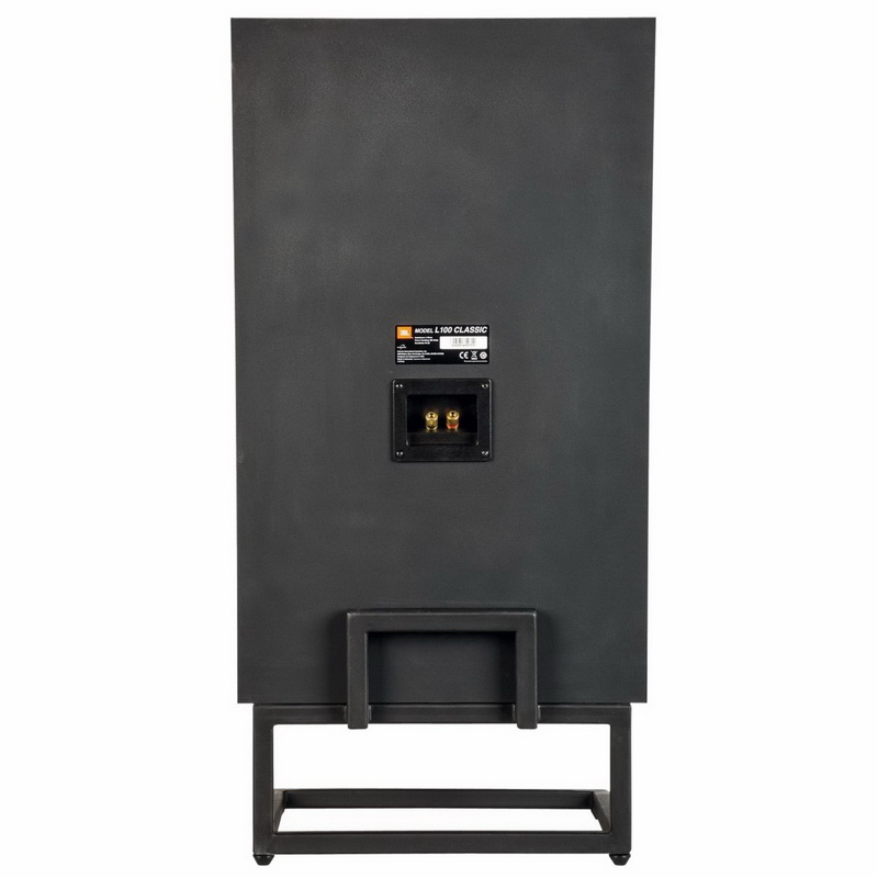 Акустическая система JBL L100 Classic использует недавно разработанный 25-мм титановый купольный твитер JT025Ti1, соединенный с волнорезом с акустической линзой для оптимальной интеграции со 125-мм СЧ-драйвером в литой раме JM125PC. Вертикальный массив ВЧ/СЧ- преобразователей слегка смещен вправо от низкочастотного динамика, с ВЧ/СЧ-аттенюаторами, расположенными в верхнем левом углу передней перегородки. Низкие частоты воспроизводятся 300-мм басовиком 1200FE в литой раме, с белой конусной диафрагмой, работающей в басовом рефлекторном корпусе. Отклик оптимизируется с помощью порта фазоинвертора, выходящего на переднюю панель. На задней панели расположены позолоченные контактные клеммы.