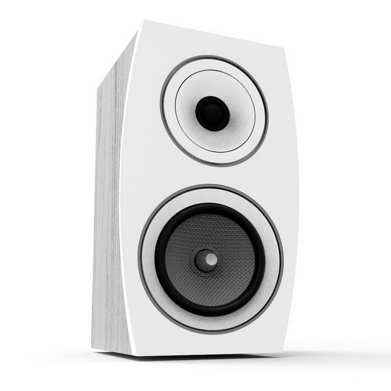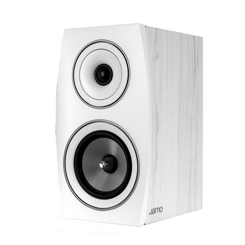 Интересно выглядит лицевая панель — она шире, чем остальной корпус АС, и имеет почти овальную форму. При взгляде на полочники со стороны и вовсе сложно понять, какая у них геометрия корпуса: овальная грань вводит в заблуждение. В верхней части скошенного овала находится дюймовый шелковый твиттер, утопленный в немаленькое «блюдце». Таким размещением твиттера инженеры Jamo боролись за контроль дисперсии и четкость прорисовки образов звуковой картины. В рамках теста постараемся выяснить, получилось ли у них выиграть в этой борьбе.