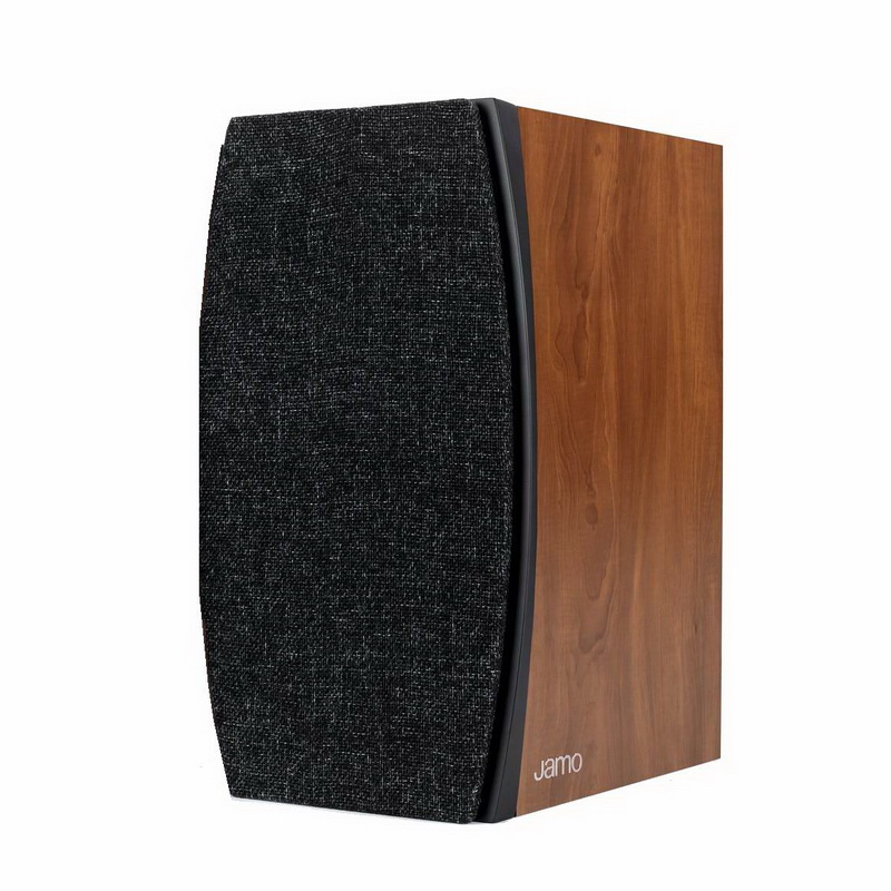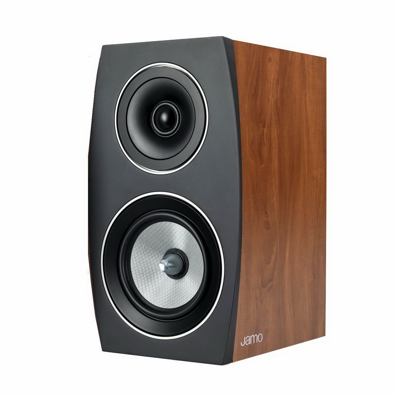 Интересно выглядит лицевая панель — она шире, чем остальной корпус АС, и имеет почти овальную форму. При взгляде на полочники со стороны и вовсе сложно понять, какая у них геометрия корпуса: овальная грань вводит в заблуждение. В верхней части скошенного овала находится дюймовый шелковый твиттер, утопленный в немаленькое «блюдце». Таким размещением твиттера инженеры Jamo боролись за контроль дисперсии и четкость прорисовки образов звуковой картины. В рамках теста постараемся выяснить, получилось ли у них выиграть в этой борьбе.