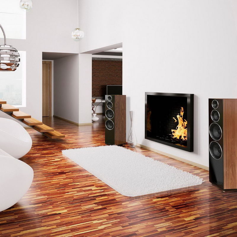 Интересней, на наш взгляд, теперь акустика выглядит и с фронта: металлические кольца вокруг динамиков аккуратно вписаны в строгий дизайн черной глянцевой панели. Важно, что, кроме внешнего вида, изменения коснулись и звуковой части. СЧ-динамик приобрел более мощный магнит, а фазоинвертор дополнительно оптимизирован.
