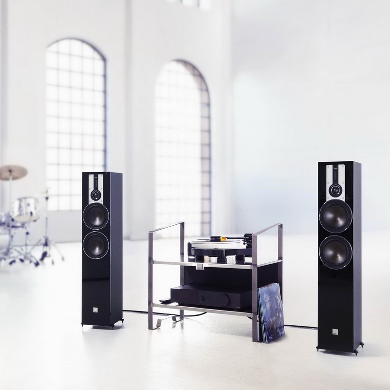 Два твитера разного типа, установленные на общей платформе (т.н. гибридный модуль), перекрывают широкий ВЧ диапазон без резонансных пиков, поскольку каждый работает в оптимальной для себя полосе. Общая диаграмма направленности тоже расширена, т.к. купол и лента имеют разную дисперсию. Ещё одна собственная разработка – 6,5-дюймовые НЧ/СЧ-драйверы. Их диффузоры фирменного коричневого цвета штампуются из смеси целлюлозы с древесным волокном. Такой экологически чистый композит обладает малой массой, высокой жёсткостью и хорошими демпфирующими свойствами. Подвесы из мягкой резины оказывают минимальное сопротивление подвижной системе.