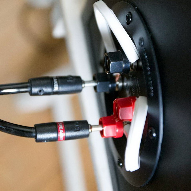 Корпус и впрямь очень жесткий с немалым весом, качество сборки и изготовления всех деталей превосходное. Терминалы для подключения акустического кабеля также очень качественные и допускают двухпроводную коммутацию.