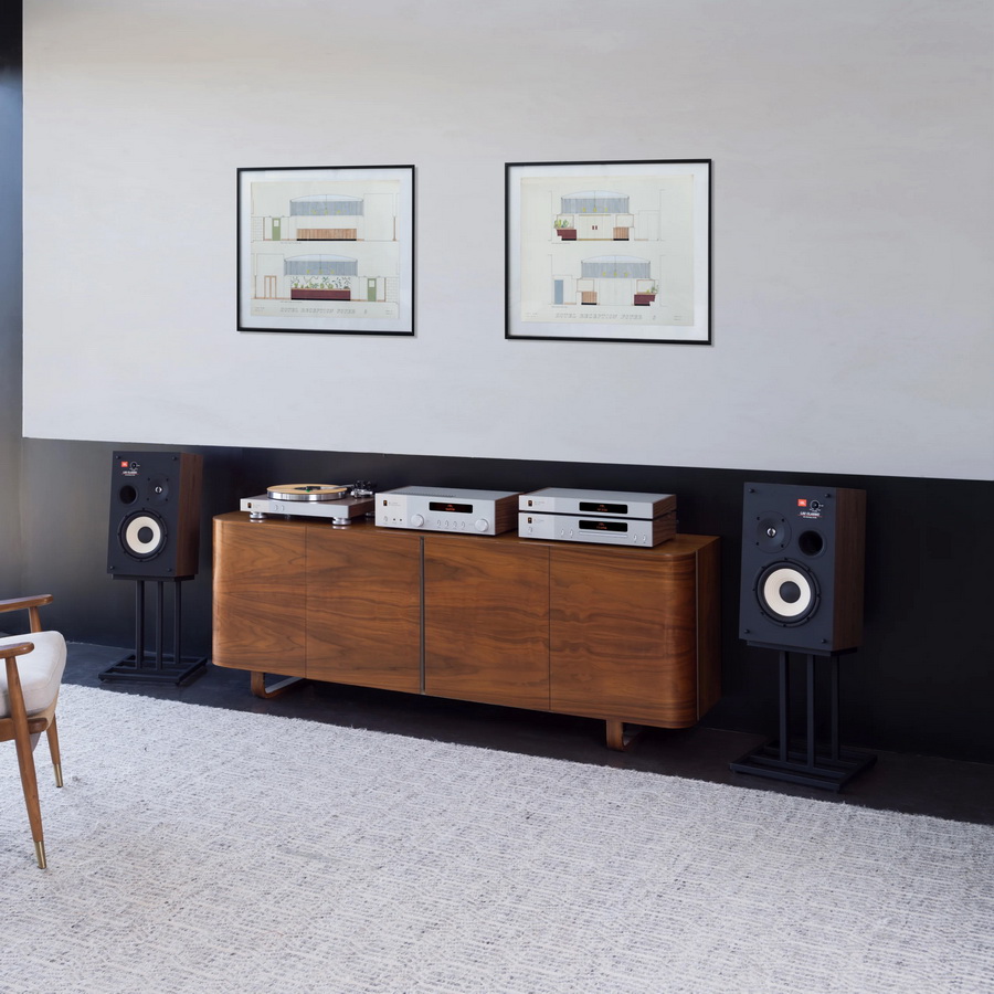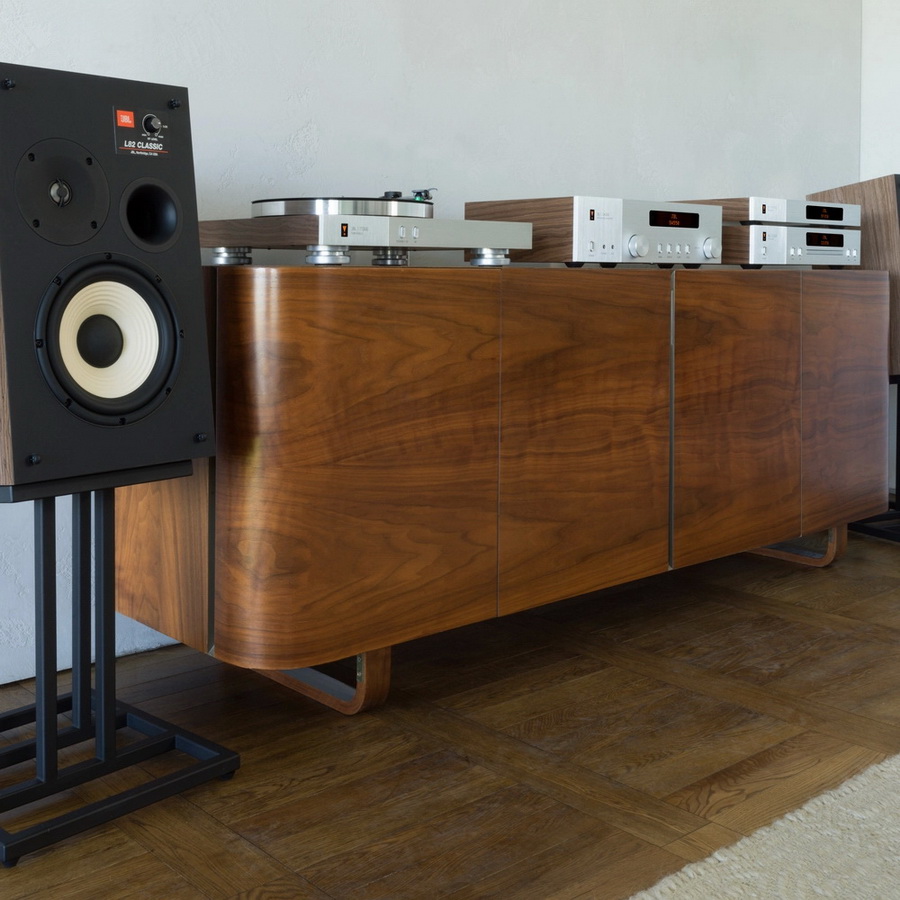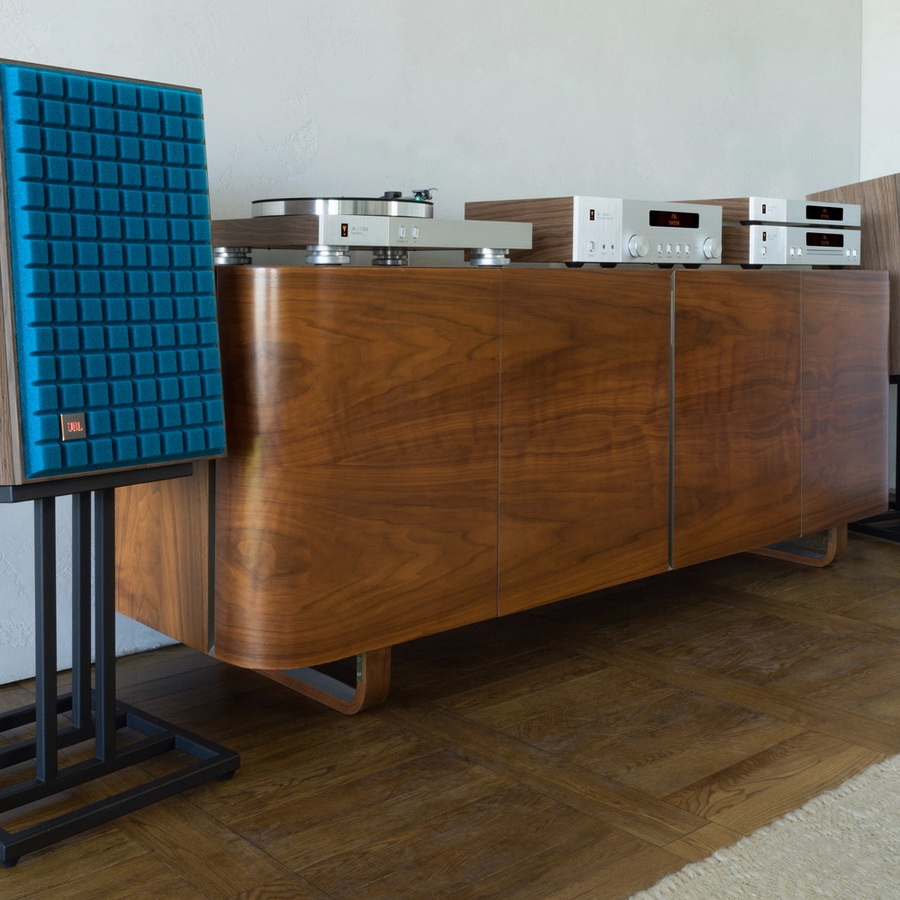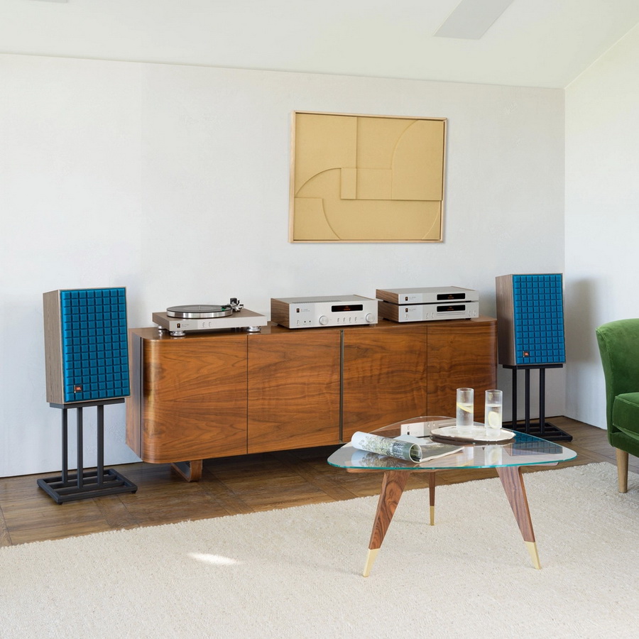 Акустическая система JBL L82 Classic MkII имеет корпус из сатинированного шпона орехового дерева, и эффектную защитную решетку из пеноматериала Quadrex, доступную в черном, оранжевом или синем цвете.