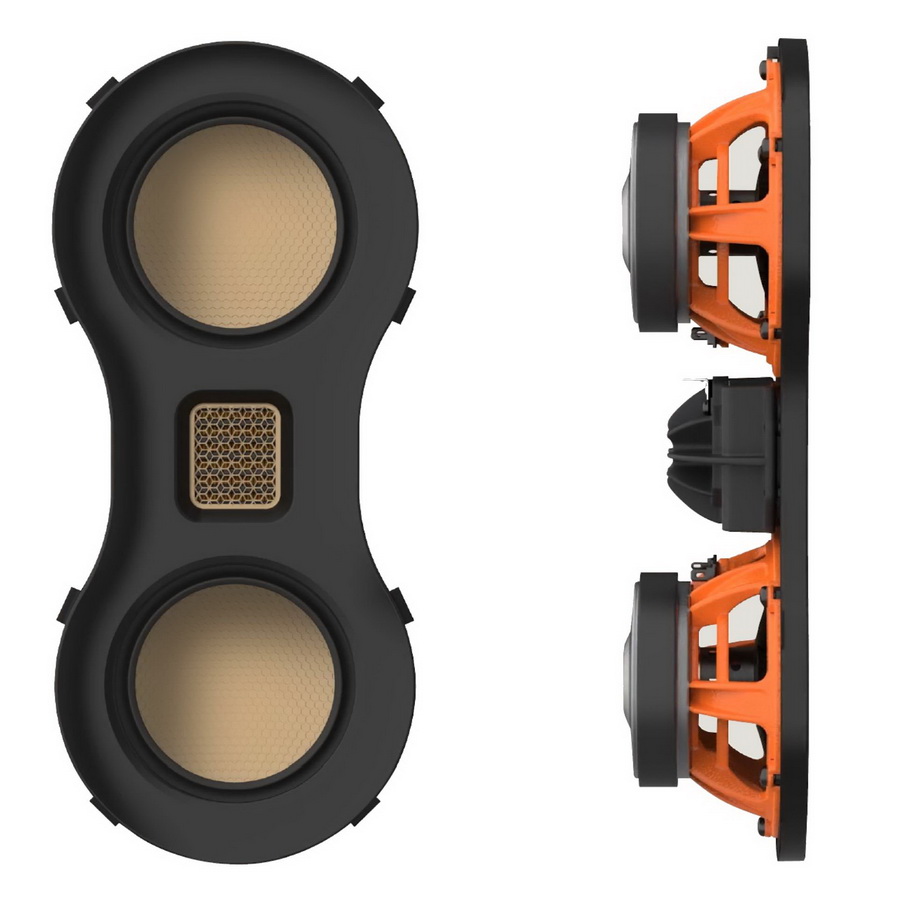 Над и под твитером расположены СЧ/НЧ-динамики RDT (Rigid-Diaphragm Technology) третьего поколения диаметром 108 мм (4,25 дюйма) – с такой же конструкцией, как и у флагманских колонок Hyphn. Диффузоры состоят из трех ультратонких слоев: сотового материала Nomex, покрытого изнутри углеволокном, а сверху — слоем из сплава алюминия и магния с керамическим покрытием (C-CAM). Динамики оснащены большими звуковыми катушками и магнитными системами. Таким образом, сэндвич-диафрагмы получаются чрезвычайно жесткими и в то же время очень легкими.