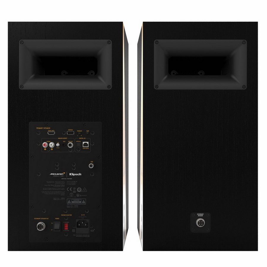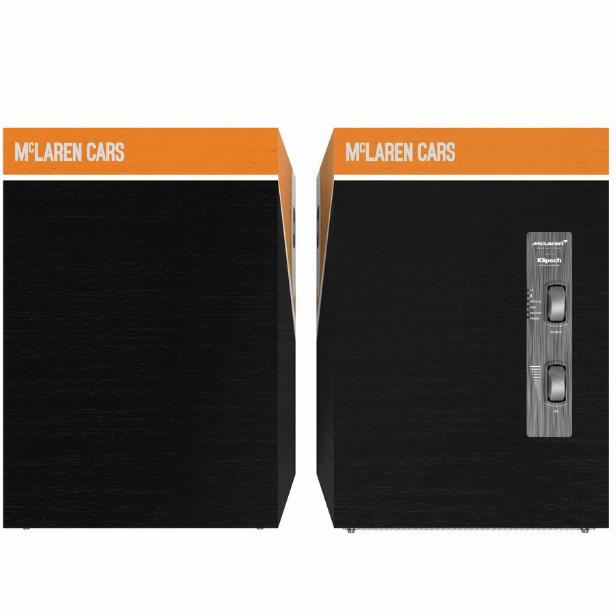 Американская компания Klipsch продолжила сотрудничество с командой McLaren F1. Пара Klipsch The Nines McLaren Edition, представляющая собой связку активной (активный монитор) и пассивной (пассивный монитор) полочных акустических систем, позиционируется компанией Klipsch как альтернативный вариант современным саундбарам. АС выполнены в аккуратном дизайне с ретро-элементами и оснащены съемными грилями с магнитным креплением. Klipsch The Nines McLaren Edition обладают дюймовым компрессионным твитером LTS с технологией линейного перемещения мембраны и титановым куполом. Твитер помещен в фирменный рупор Tractrix, гарантирующий точную диаграмму направленности и детальное звучание. Передачей СЧ/НЧ-диапазона занимается 8-дюймовый динамик с длинноходным диффузором из волоконного композита.