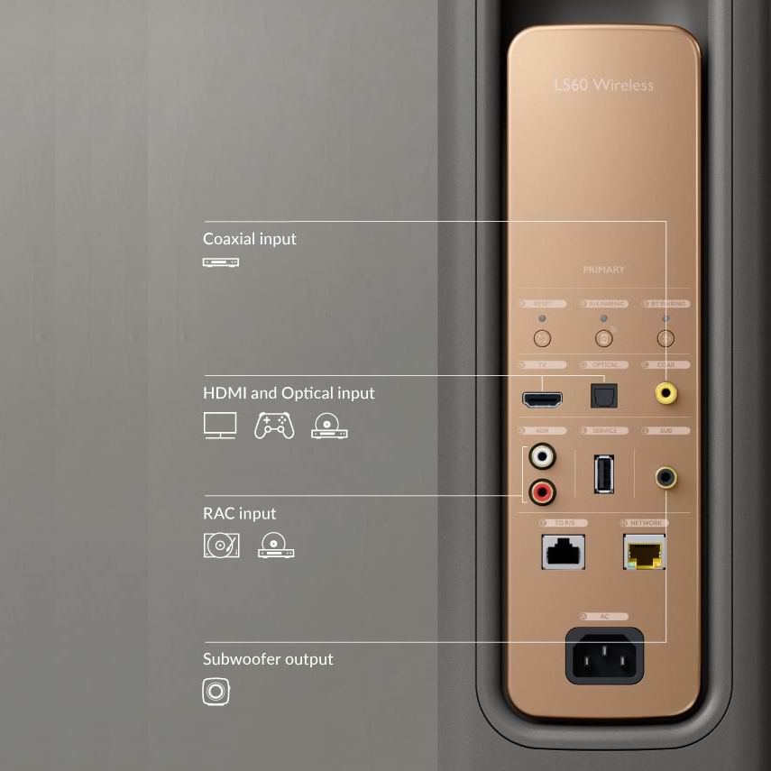 Благодаря HDMI eARC вы можете подключить активные колонки к телевизору и значительно улучшить качество звука . Производительность LS60 Wireless практически не имеет себе равных среди саундбаров . Цифровые сигналы поступают в активные колонки через оптические и коаксиальные соединения, а для аналоговых источников по-прежнему доступны классические разъемы RCA. К ним, например, легко можно подключить проигрыватель виниловых пластинок – при условии, что он имеет встроенный фонокорректор.