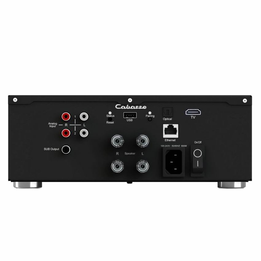 В дополнение к многочисленным опциям потоковой передачи, усилитель Cabasse Abyss предлагает хорошо оснащенное подключение, например, с двумя входами RCA и оптическим входом для подключения проигрывателя винила с предварительным усилением или проигрывателя компакт-дисков. Удобный порт HDMI eARC также подходит для подключения телевизора. Наконец, выход на сабвуфер позволяет подключить к нему сабвуфер.