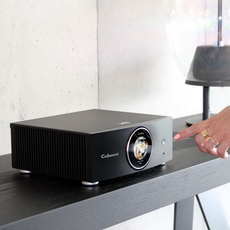 Сенсорный экран окружен вращающимся кольцом для регулировки громкости звука. Ход плавный, что обеспечивает точную и интуитивно понятную настройку уровня прослушивания. Однако возникает одно неудобство : пыль неизбежно скапливается вокруг и под этим кольцом. После двухмесячного опыта работы с этим усилителем можно было уловить шелест пыли при вращении кольца. Хотя частицы легко удаляются, это контрастирует с изысканным и роскошным внешним видом, который стремится воплотить этот усилитель.