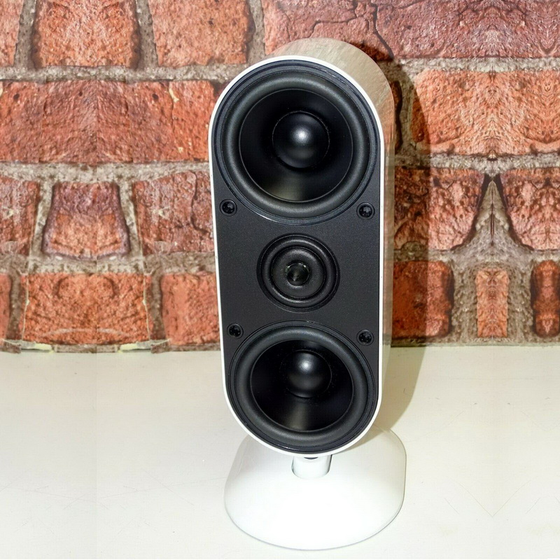 Расположены они симметрично по принципу Д’Апполито, что даёт широкую диаграмму направленности. Алюминиевый корпус с закруглёнными стенками обеспечивает минимум резонансов и отражений. Оформление закрытое, и при таком объёме нижняя граница заявлена 95 Гц. Это нормально — нижний регистр всё равно поручен сабвуферу, а акустика в герметичном корпусе звучит динамичнее и быстрее, чем с фазоинвертором.