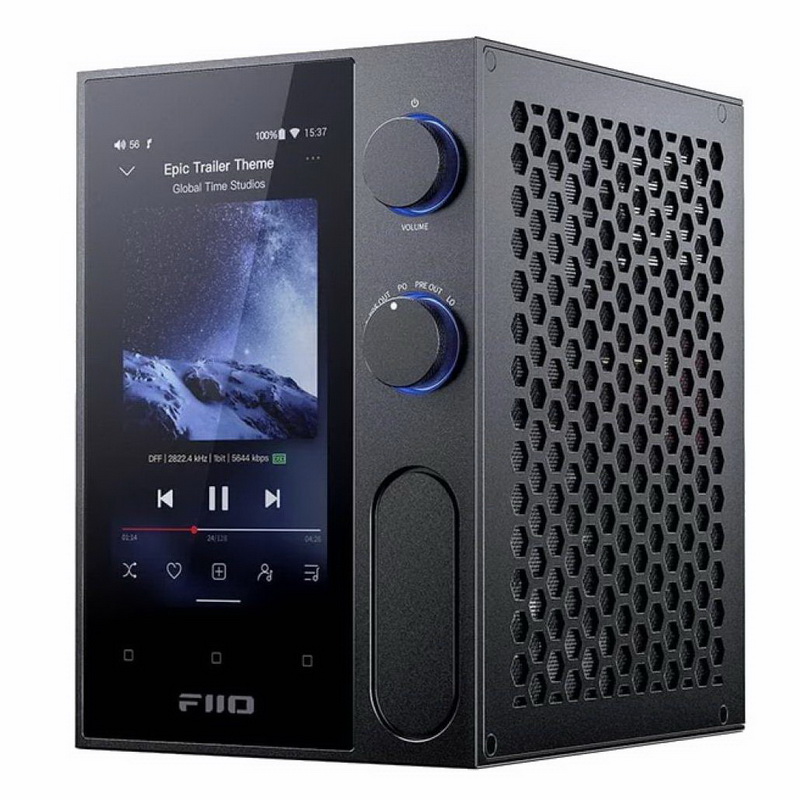 FiiO R7 представляет собой многофункциональное устройство, способное стать универсальным источником сигнала в современной аудиосистеме. Аппарат выполнен в небольшом, привлекательном внешне корпусе из металла и рассчитан на вертикальное размещение, благодаря чему займет минимум места на стойке или столе. На фронтальной панели FiiO R7 смонтирован 4,97-дюймовый дисплей с «портретным» выводом изображения, который очень удобен в использовании. Для управления устройством можно использовать пульт ДУ или фирменное приложение.