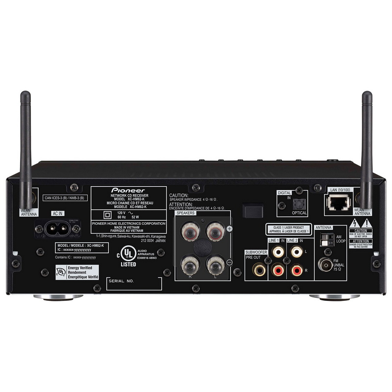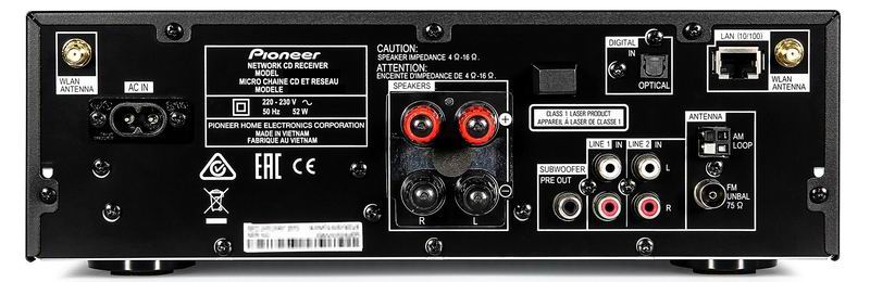 Pioneer X-HM82, как и младшие модели серии X-HM, умеет работать только с оптическими дисками CD. Дело здесь не в какой-либо ограниченности центра или желании производителя сэкономить, а в конструкторской концепции, в соответствии с которой изучаемая система ориентирована на работу с аудиоматериалом. И в этой области ее возможности поражают. Помимо воспроизведения CD и файлов MP3 и WMA, записанных на таких дисках, аппарат проигрывает звуковые мультимедийные файлы, а также цифровые потоки, получаемые по сети. Интеграция в сеть может быть выполнена как через обычный Ethernet, так и беспроводным образом по Wi-Fi. Материал считывается с серверов DLNA в сети либо с внешних накопителей с интерфейсом USB. Причем при проводном соединении с сетью или при работе по USB поддерживается воспроизведение файлов WAV и FLAC вплоть до параметров 24 бит / 192 кГц. Правда, в случае использования Wi-Fi воспринимаются лишь файлы с частотой дискретизации до 48 кГц. Кроме того, подключение Pioneer X-HM82 к домашней компьютерной сети с выходом в Интернет дает доступ к трансляциям сотен интернет-радиостанций, расположенных по всему миру. Большое внимание уделено и работе с мобильными гаджетами компании Apple.