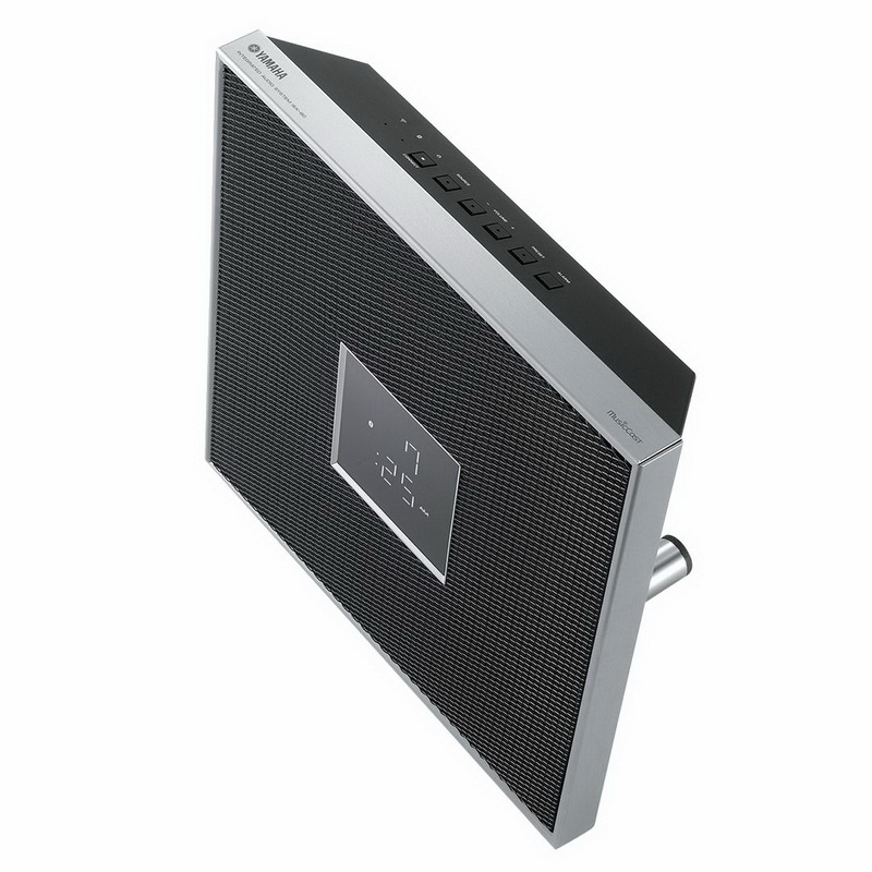 В центре фасада расположен довольно крупный информационный дисплей, остальная площадь колонки закрыта металлической сеткой, скрывающей динамические головки. Yamaha Restio ISX-80 оснащена четырьмя излучателями – по паре на каждый из каналов. Басы и средние частоты воспроизводят динамики с коническими диффузорами диаметром 8 см, а высокочастотный спектр поручен купольным твитерам диаметром 3 см. На верхнем торце колонки расположены небольшие клавиши управления системой и индикаторы Wi-Fi и Bluetooth. Но скорее всего вы предпочтете управлять системой либо при помощи комплектного беспроводного пульта ДУ размером с кредитку, либо, что еще более вероятно, через фирменное приложение для смартфонов под управлением iOS или Android.