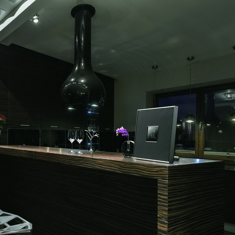 Можно выбрать из трех цветовых вариантов отделки корпуса — белый, черный и глубокий пурпурный, причем фон информационного дисплея окрашен в тон остальной отделки. В большинстве случаев на нем отображаются крупные цифры электронных часов. Реализованы здесь и функции будильника, что предопределяет установку Yamaha Restio ISX-80 в спальне.