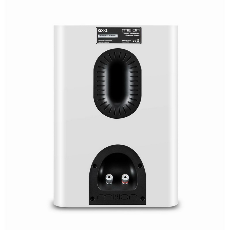 Колонки Mission QX-2 MKII оснащены тыловым фазоинвертором, овальная форма отверстия которого и специальные насечки упорядочивают прохождение воздуха для устранения слышимых шумов. Для подключения к усилителю предназначена пара винтовых клемм.