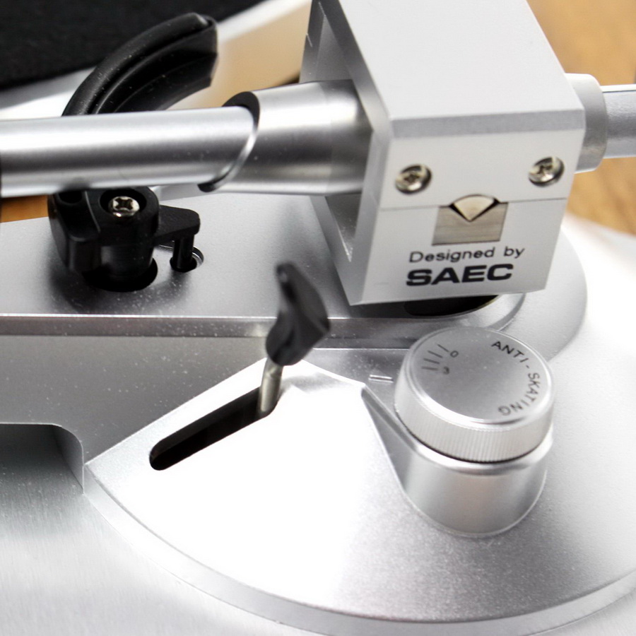 Для демпфирования аппарат установлен на виброизолирующих опорах. Он оснащен S-образным тонармом, разработанным совместно с японской компанией SAEC Corporation. Тонарм установлен на прецизионном подшипнике, который обеспечивает плавное и точное перемещение. Шелл съемный, и на нем уже смонтирован и настроен звукосниматель Sumiko Oyster. Предусмотрены регулировки прижимной силы и антискейтинга, поэтому пользователь может установить на TEAC TN-4D-SE другой совместимый картридж по своему выбору.