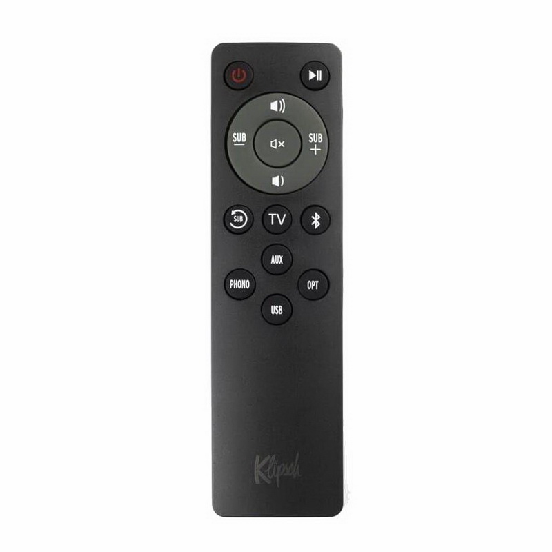 Вы также можете управлять Klipsch The Fives с помощью прилагаемого пульта дистанционного управления. Наряду с кнопкой включения / выключения, он имеет кнопку воспроизведения / паузы, увеличения / уменьшения громкости, увеличения / уменьшения громкости сабвуфера, отключения звука и специальных кнопок выбора источника, а также кнопку Sub Reset, которая сбрасывает уровень сабвуфера до нужного. номинальное значение, а также включение и отключение Dynamic Bass EQ.