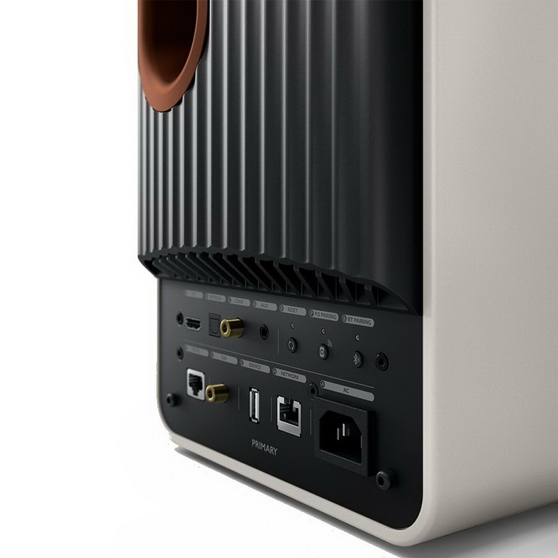 Усовершенствована в KEF LS50 Wireless II и сетевая и коммутационная часть. В нашем распоряжении теперь не только Bluetooth, но также AirPlay 2 и Chromecast. Расширен с трех до десяти список поддерживаемых стриминговых поставщиков музыки. При этом встроенный потоковый рендер уже рассчитан на воспроизведение MQA, PCM 384 кГц и DSD256, а входной селектор обзавелся терминалом HDMI для возвратного аудиоканала с ТВ, коаксиальным входом (в дополнение к оптике) и сервисным хабом USB Type-A. Но, увы, теперь нет USB Type-B для прямого подключения ПК – при столь развитых network-функциях асинхронный протокол сочли нецелесообразным.