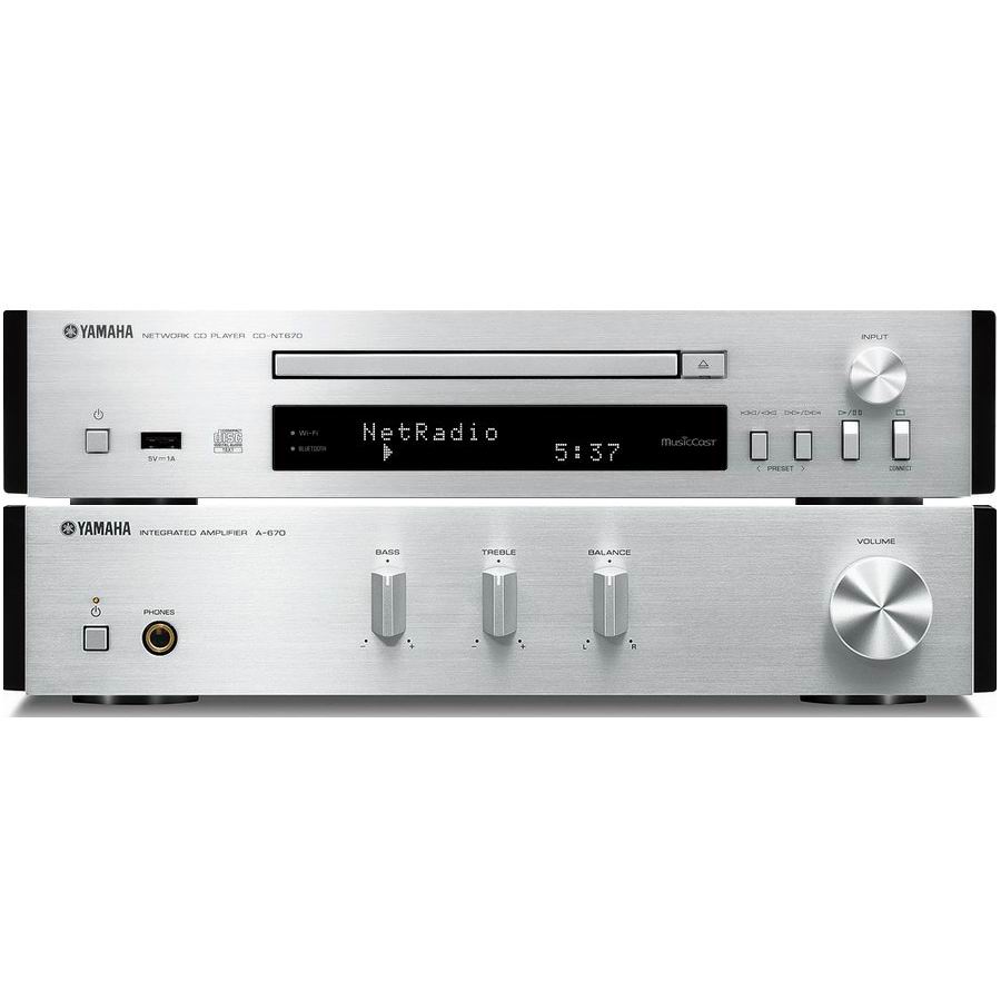 Yamaha MCR-N670 состоит из стерео ресивера Yamaha A-670 и сетевого CD проигрывателя Yamaha CD-NT670.