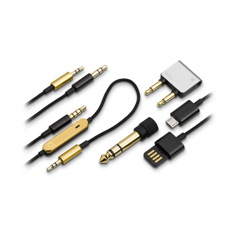 В комплект поставки наушников входят мягкие кожаные чехлы для наушников и внешнего аккумулятора, а также несколько кабелей для подключения ко всевозможным девайсам: со встроенным пультом для управления iOS-устройствами, пультом для Android-устройств, разъёмом USB для зарядки и прямого подключения к компьютеру, классический 3,5-мм кабель, а также переходник с 3,5-мм на 6,3-мм вход и адаптер к мультимедийной системе самолёта.