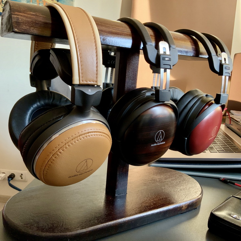 Флагманские наушники Audio-Technica ATH-AWKT являются своеобразной реинкарнацией модели ATH-W5000, однако крышки корпусов ее выполнены не из вишневого, а черного дерева, точнее, его японской разновидности Kokutan. Эта древесина отличается очень высокой плотностью и потому эффективно гасит резонансы.