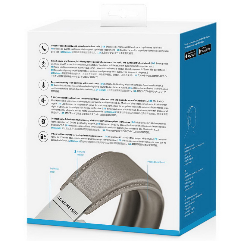 В данной модели используется новая Bluetooth-технология пятого поколения с поддержкой улучшенных аудиокодеков aptX, aptX LL и AAC. Наушники обеспечивают очень высокое качество звука, сравнимое с тем, которое можно получить при проводном соединении. Емкости встроенного аккумулятора Sennheiser Momentum Wireless M3 хватает на 17 часов прослушивания музыки, а полностью он заряжается всего за три часа. Управлять наушниками можно как с помощью кнопок, расположенных на корпусе, так и через фирменное мобильное приложение. А среди дополнительных функций можно отметить очень полезную Smart TILE, которая позволит найти Sennheiser Momentum Wireless M3 в любом беспорядке.
