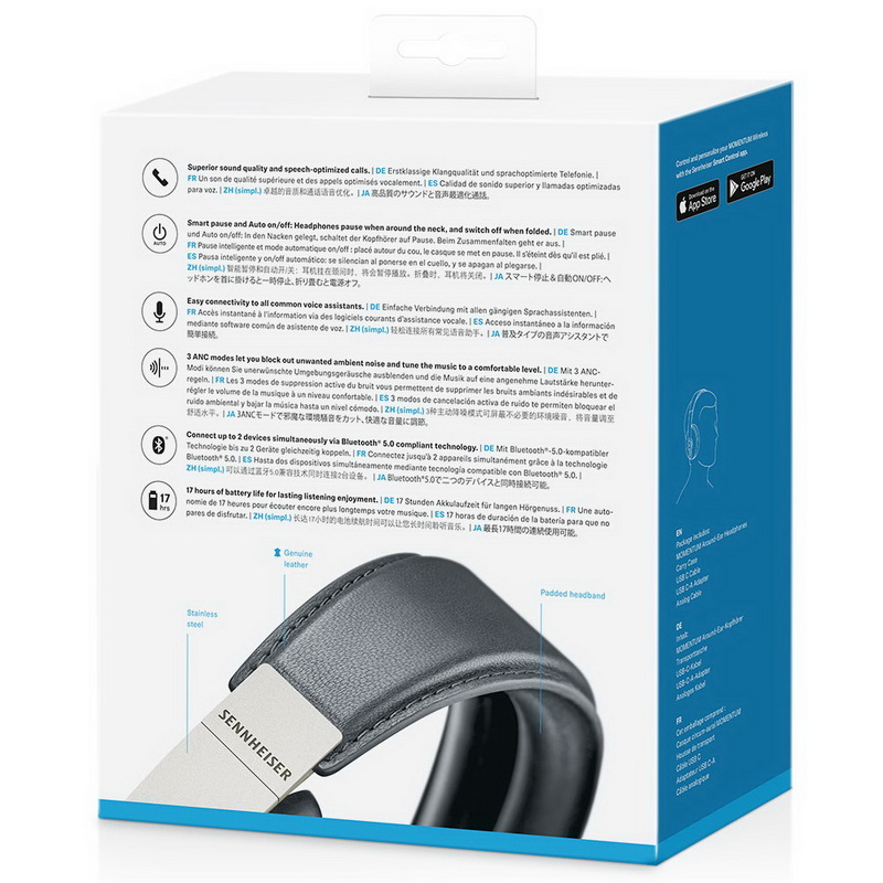 В данной модели используется новая Bluetooth-технология пятого поколения с поддержкой улучшенных аудиокодеков aptX, aptX LL и AAC. Наушники обеспечивают очень высокое качество звука, сравнимое с тем, которое можно получить при проводном соединении. Емкости встроенного аккумулятора Sennheiser Momentum Wireless M3 хватает на 17 часов прослушивания музыки, а полностью он заряжается всего за три часа. Управлять наушниками можно как с помощью кнопок, расположенных на корпусе, так и через фирменное мобильное приложение. А среди дополнительных функций можно отметить очень полезную Smart TILE, которая позволит найти Sennheiser Momentum Wireless M3 в любом беспорядке.