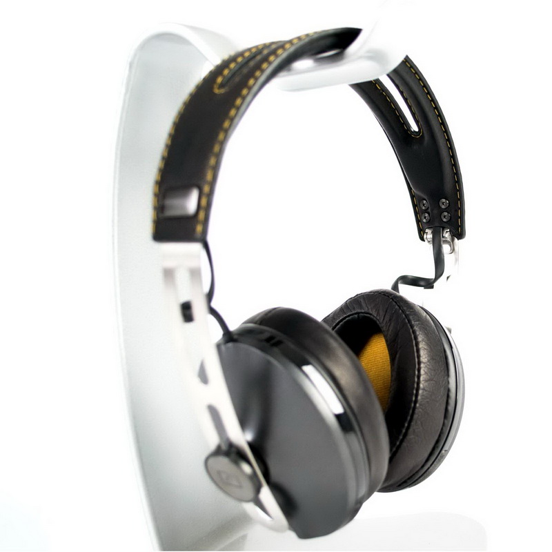 Удобная и вместе с тем надёжная посадка явно была одним из приоритетов при разработке Momentum M2. Как и у предшественника, чаши новых Momentum крепятся на шарнирах, которые фиксируются по высоте в специальных пазах левой и правой дужек оголовья. Угол прилегания чашек варьируется в небольшом диапазоне, принимая нужную форму при одевании. Мягкие амбушюры из натуральной овчины подверглись доработке, они стали больше, глубже и приняли асимметричную форму – теперь самые крупные уши «утонут» в них, как в пушистом одеяле. Верхняя часть амбушюр дополнительно смягчена, чтобы не создавать проблем при одевании поверх любых очков: оптических, компьютерных или солнцезащитных. Давление амбушюр на уши – достаточное, чтобы создать закрытый акустический профиль, предотвратить сползание при случайных движениях и обеспечить шумоизоляцию, не жертвуя комфортом. Оголовье – широкое, сдвоенное, распределяет и без того скромный вес наушников (менее 200г) по большей площади. В области соприкосновения с черепом, оголовье с внутренней стороны заполнено мягким пенным материалом и обшито кожей с ручным тиснением, водостойкой и пропускающей воздух.