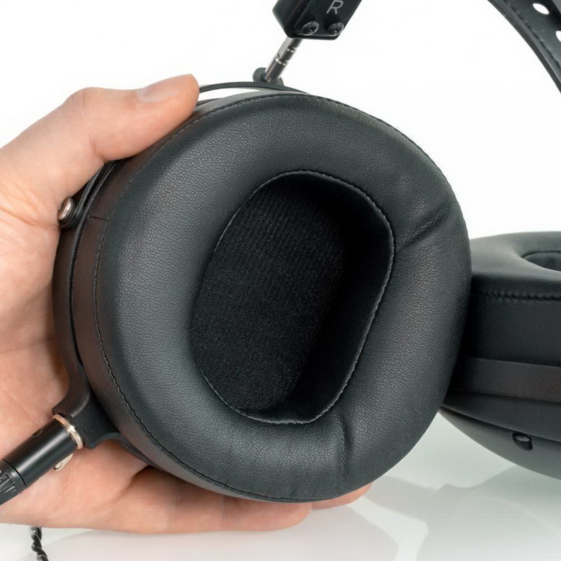 Амбушюры у модели Audeze LCD2 Closed-Back обтянуты мягкой искусственной кожей. Это не только экономия, но и моднейший экологический тренд, когда при изготовлении изделия не используют материалы животного происхождения. И надо признать, что искусственная кожа весьма качественная. Она приятная при прикосновении к телу, не вызывает дискомфорта при длительном ношении. В общем, жаловаться не на что. Если же вы предпочитаете натуральную кожу или велюр — договоритесь с продавцом. В официальный список опций выбор амбушюр не входит, но совершенно очевидно, что у всей линейки LCD они взаимозаменяемы.