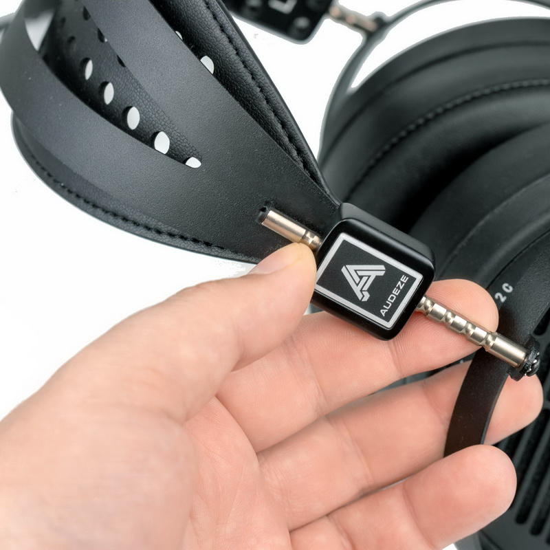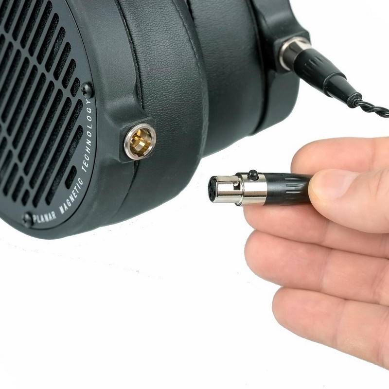 Кабели подключаются раздельно к каждому наушнику. В комплекте 2-метровый шнур 1/4″ TRS (большой джек) на 4-контактные Mini-XLR. Отдельно можно докупить фирменный кабель на балансный 4-контактный полноразмерный разъем XLR. Кабель выглядит очень интересным. Оголовье имеет регулировку в виде нескольких ступеней. Конструкция довольно туго поддается регулировке, но зато крепко держит выбранную длину. Посадка даже на большой голове европейца с большим размером ушей нареканий не вызывает.
