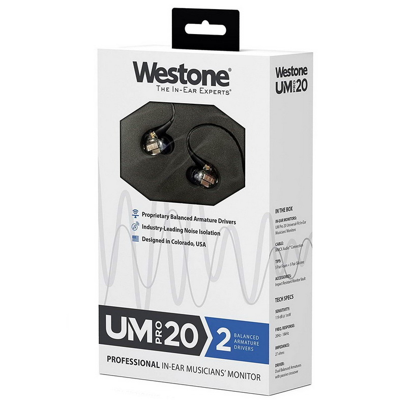 В каталоге Westone наушники серии UM Pro позиционируются как универсальные мониторы для профессиональных музыкантов, которые нуждаются в высокой степени звуковой изоляции. Понятно, что речь идет не о звёздах рока и эстрады, использующих индивидуально изготовленные сценические мониторы стоимостью несколько тысяч долларов, а о рядовых тружениках сцены. Для тех, кто забрался по лестнице в небо повыше, компания выпускает более дорогие модели, допускающие индивидуальное оформление и установку специального адаптера с изготовленными по спецзаказу насадками. Есть еще линейка AM Pro — входящие в нее модели близки по конструкции к UM, но оснащены специальным фильтром TRU™ Audio, который позволяет выступающему слышать, что происходит вокруг.