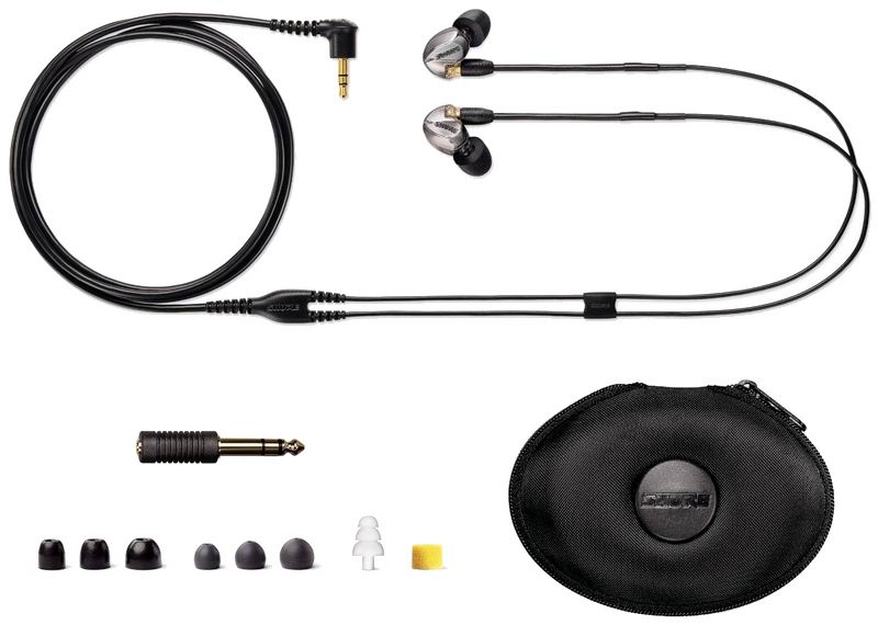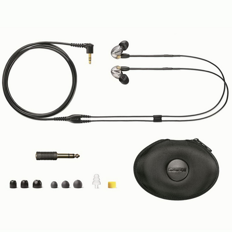 В премиум комплекте есть компактный футляр для хранения и транспортировки Shure SE425, переходник 6.3 мм и множество насадок разных размеров. Рекомендую экспериментировать, чтобы найти наиболее подходящую, хотя пенные насадки, например, довольно сложно снимать и надевать.
