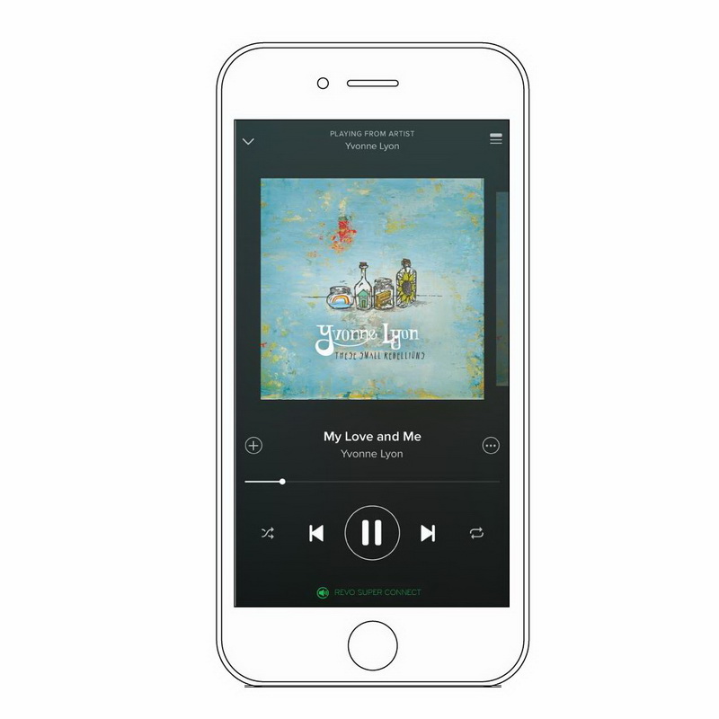 Revo SuperConnect совмесим с сервисом Spotify. Потоковый сервис Spotify Connect позволяет подписчикам прослушивать через потоковые устройства Revo SuperConnect миллионы музыкальных треков по беспроводной связи, пользуясь приложением Spotify на мобильных гаджетах. Потоковые устройства Revo SuperConnect обеспечивают непосредственную коммуникацию с серверами Spotify, благодаря чему меньше разряжаются аккумуляторы гаджетов и обеспечивается возможность совершать звонки и использовать другие приложения, не прерывая музыкальное воспроизведение.