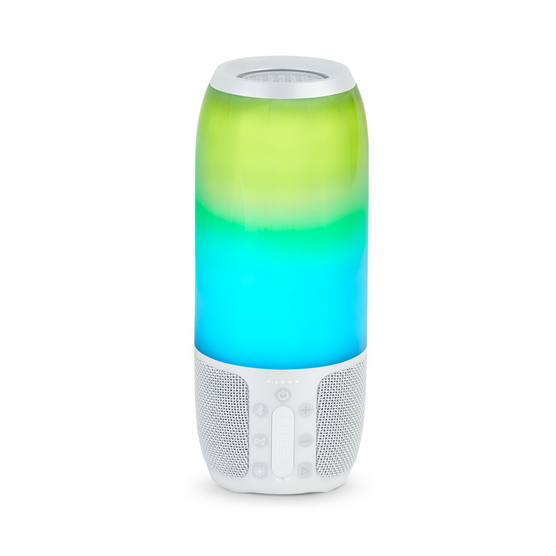 При включении всех огней JBL Pulse 3 может светиться практически полностью белым, красным, желтым, оранжевым, зеленым, голубым, темно-синим или фиолетовым, но, как правило, совмещает эти цвета для получения розоватого и других полутонов с эффектами радуги. Покой вообще не свойственен огням JBL Pulse 3 – как подсказывает название, они либо пульсируют, сменяя уровень яркости, или меняют цвет с одного на другой.